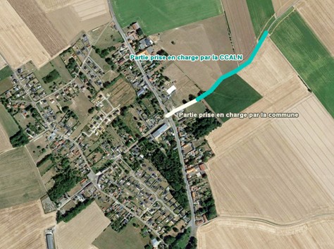 La partie correspondante au tronçon du panneau d’entrée du village au rond-point est du domaine de compétence communal, la responsabilité de la voirie pour la communauté de communes s’arrêtant au panneau.